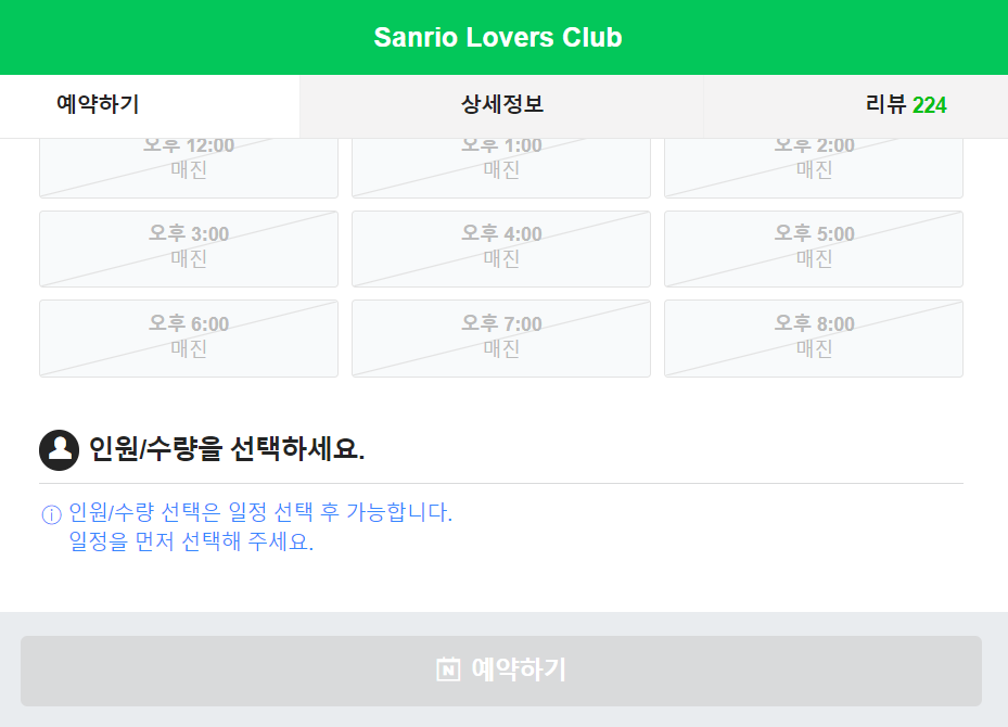 이때는 시나모롤 예약 때와 달리 수월하게 예약 창에 들어갈 수 있었다.